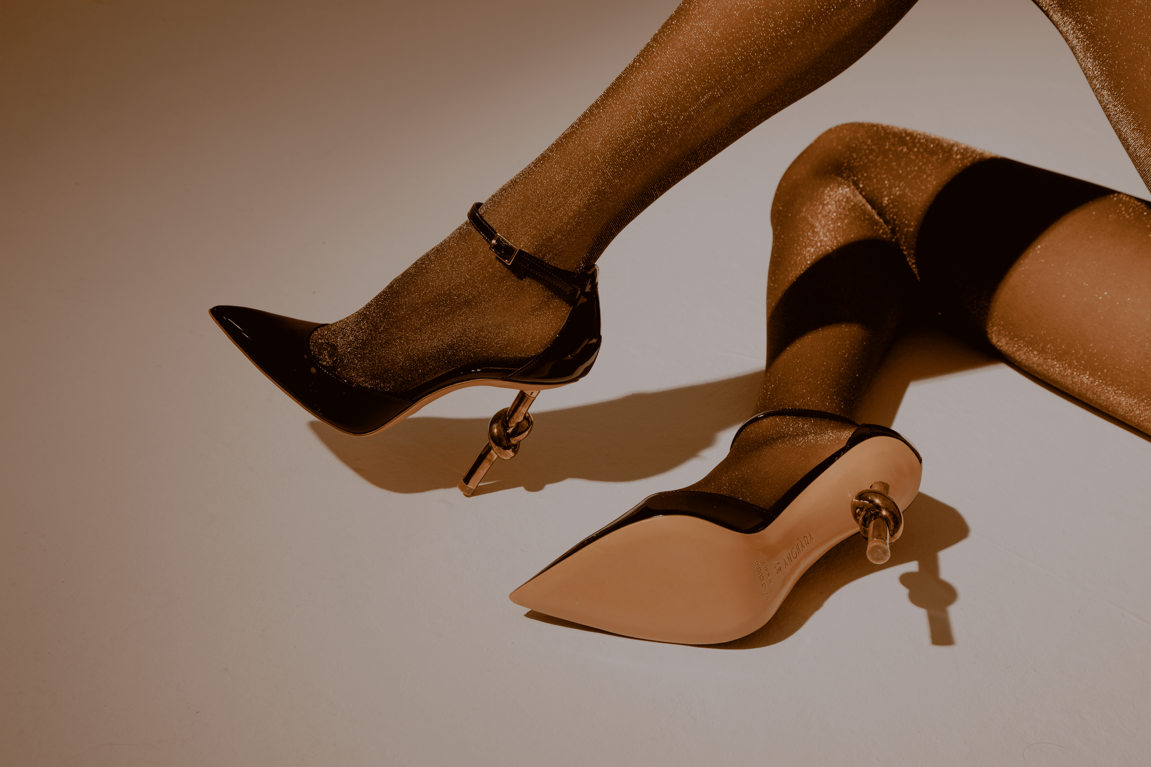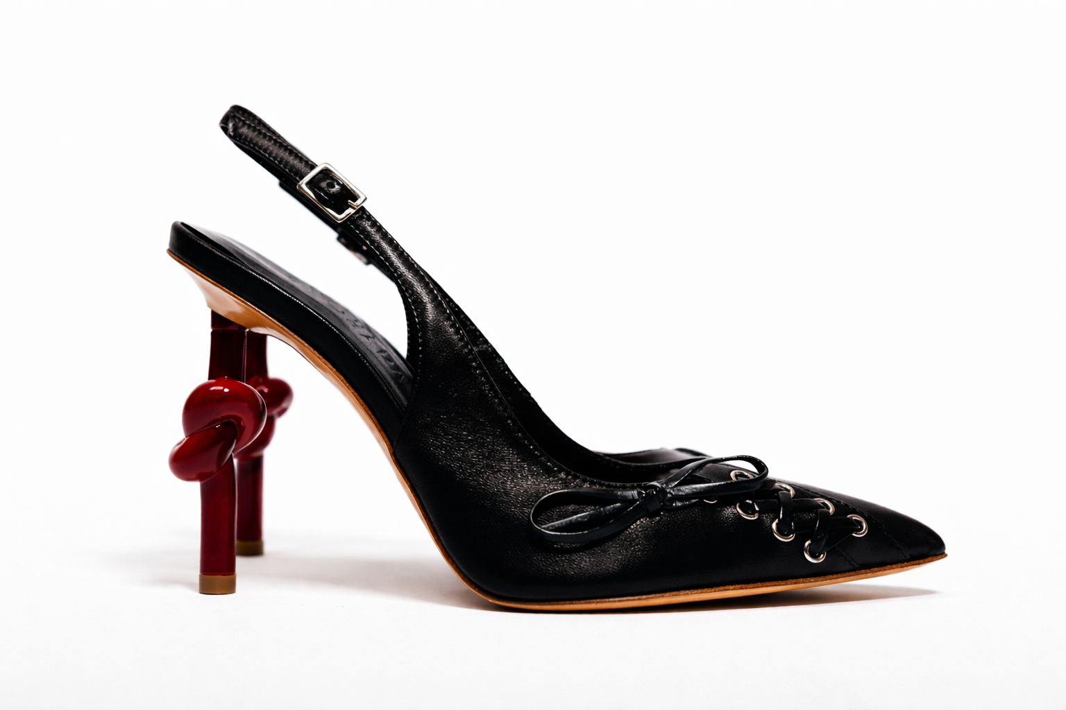 Il Tacco Nodo, simbolo della donna che si abbraccia, cambia posizione da una scarpa all’altra: è questo che rende ogni paio davvero unico.